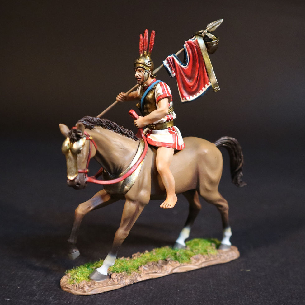 The proportion of cavalry fielded is never mentioned in historical references, but it is assumed it was low, as the wooded mountains would not have been good cavalry country. Like the Romans the Samnite cavalry were organized into Turmae. Many paintings show warriors carrying spears over their shoulders with bright cloths hanging from them. These are often interpreted as flags, but it is believed that they were tunics and belts. These represent trophies taken from the dead or captured enemy who had been stripped, which was a common practice in both Italy and Greece.