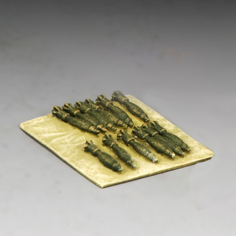 Un ajout très, très utile et nécessaire à l'ensemble précédent ... 12 rounds de mortier supplémentaires disposés sur un morceau de feuille de terre kaki attendant d'être tiré.
