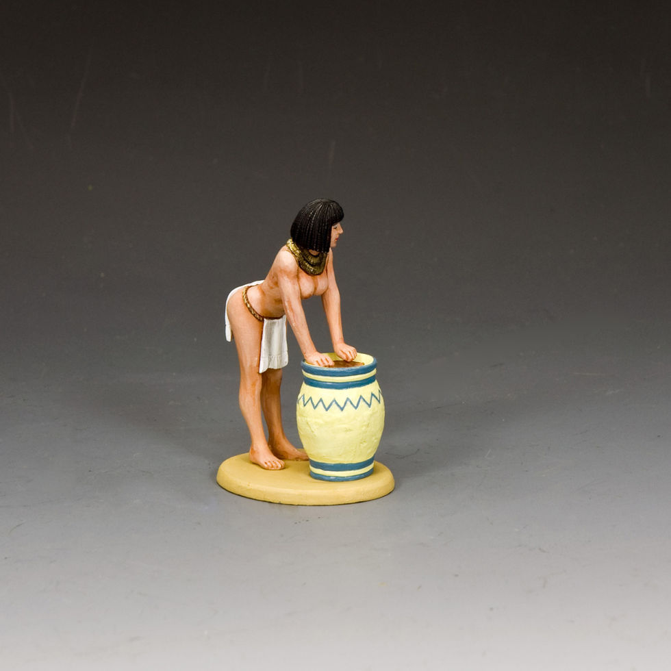 Building Pyramids and other great monuments for the Pharaohs was thirsty work and the workers needed something more than just plain water to slake their thirst... Here a young woman is hard at work making a large jar of locally brewed beer for the toiling workers. As you can see it’s hard work toiling away under a blazing hot sun... hence the maiden’s minimal use of clothing!