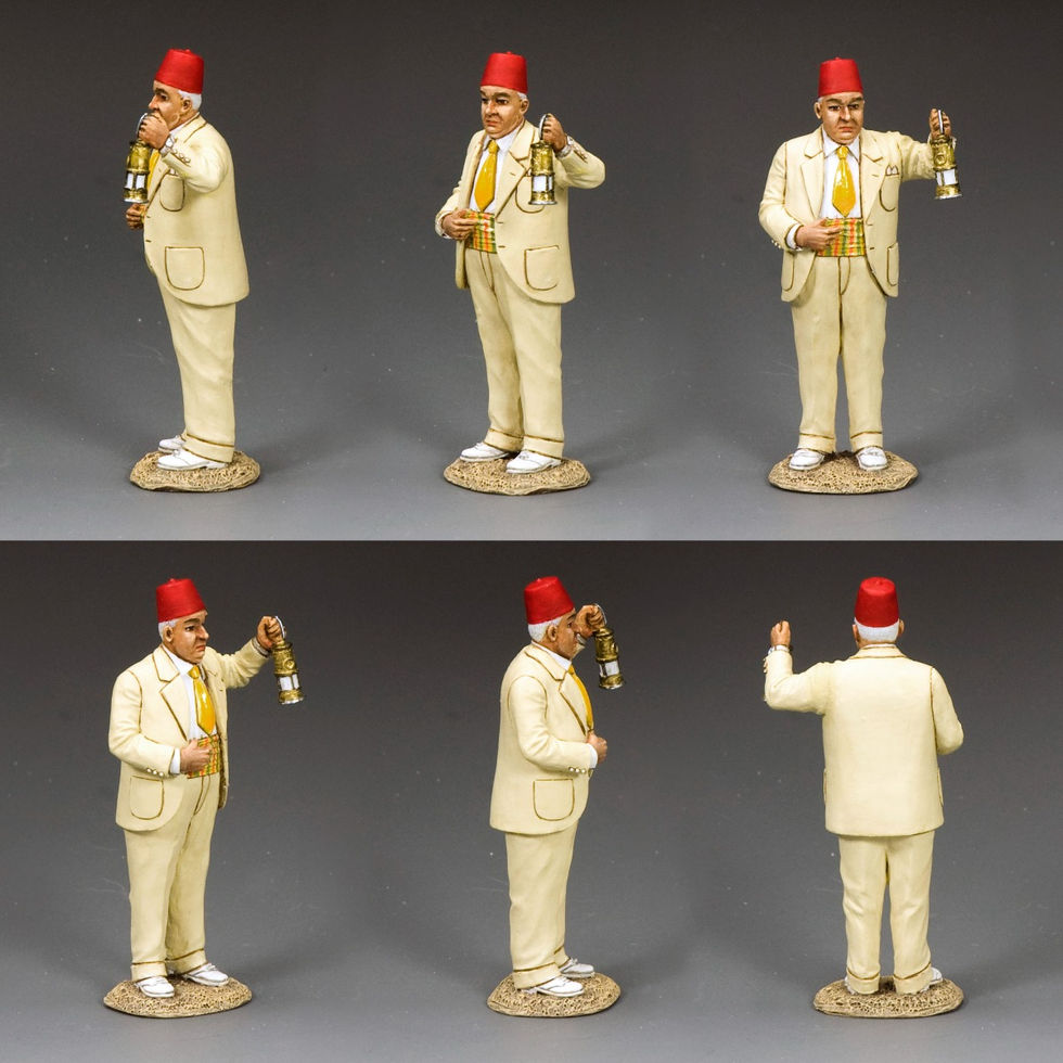 For the classic movie fans among us here is one of the supporting characters from the great ‘CASABLANCA’ starring Humphrey Bogart and Ingrid Bergman… ‘Signor Ferrari’. Ferrari, in the film is a bar-owning competitor of Bogart’s ‘Rick Blaine’ with a decidedly murky background involving all kinds of black market activity in Vichy-controlled Casablanca in what was then French Morocco. Andy from King and Country likes to imagine he might also have been in prewar Egypt wheeling and dealing in all kinds of illegal activities including selling-off stolen Ancient Egyptian antiquities to rich American and European visitors. In the ‘Casablanca’ film ‘Signor Ferrari’ was played by the British actor Sydney Greenstreet well known for his villainous roles. Scale: 1/30Material: Pewter alloyReleased Date: October 2023