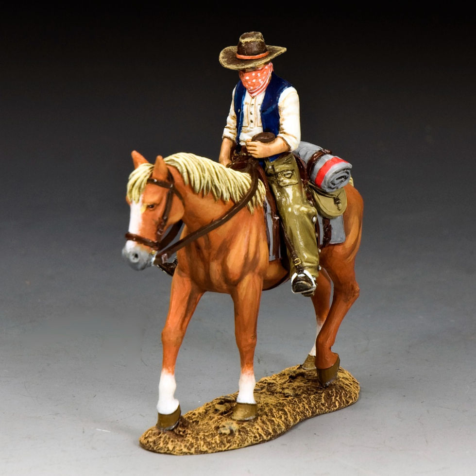 This is not, as some might expect, a ‘cross-dressing’ cowboy but a young ‘cowpoke’ who rides at the rear of the herd, always on the lookout for any ‘strays’ that might fall behind or wander off the trail. He wears his neckerchief ‘bandanna’ up over his nose and mouth to avoid the worst of the thick dust stirred up by the hooves of thousands of ‘Texas Longhorns’. Scale: 1/30Material: Pewter alloyReleased Date: March 2023