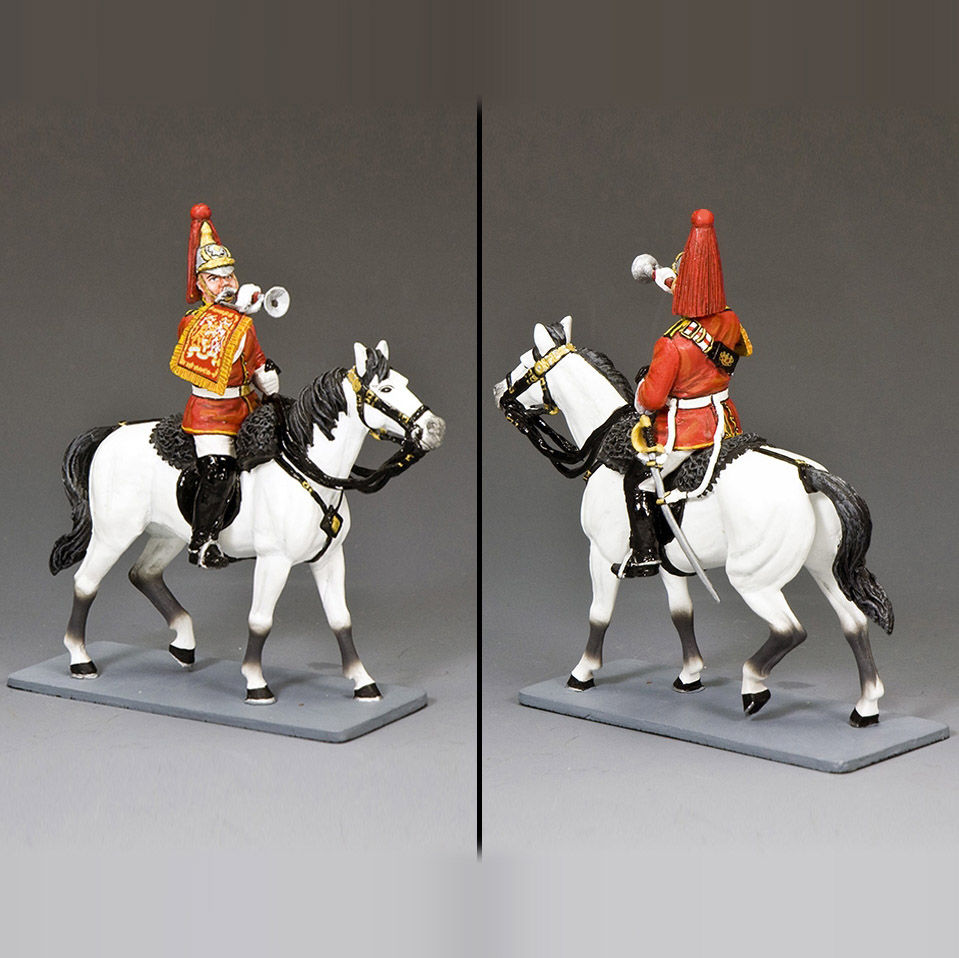 Trumpeters in cavalry regiments are always mounted on grey or white horses... and this Life Guard Trumpeter is no exception.
