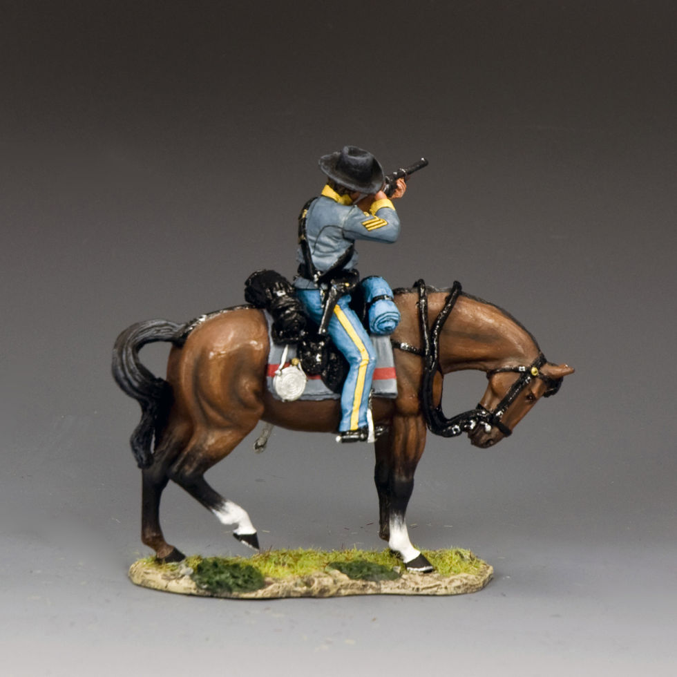 The Confederacy employed a wide range of Cavalry Carbines. Among the most readily available were the Burnside M1855 carbine... the Sharps carbine and... the P56 Enfield carbine. Our sergeant is firing his Sharps model.
