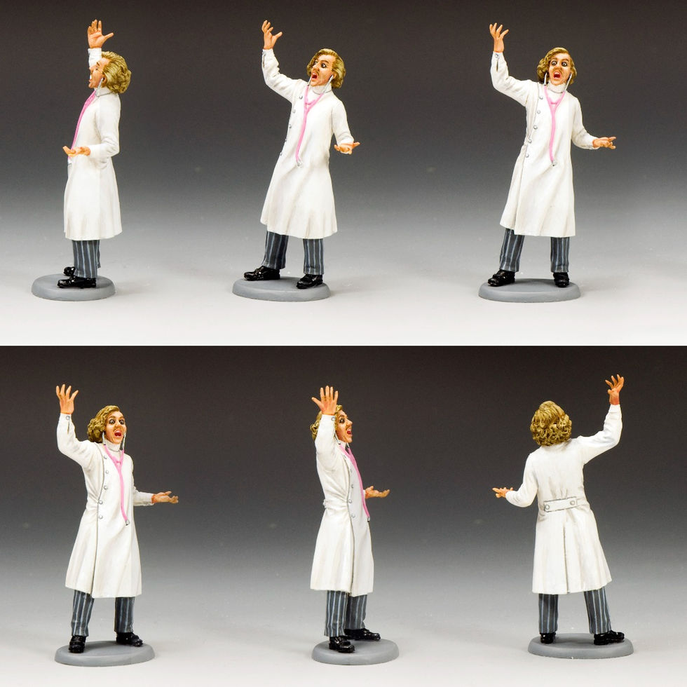 From some horror movies that can be frightening… to one that is famously funny, ‘Young Frankenstein’. This was and is simply the best and funniest comedy /horror movie ever made! Directed by Mel Brooks in 1974 it tells the story of the American great grandson of the infamous scientist who is invited to Transylvania to claim his inheritance and family estate. Filmed in black and white, ‘Young Frankenstein’ accurately echoes the look of the original 1931 horror movie complete with the same kind of vintage-style opening credits and even utilizes some of the original film props. Playing the lead was comedian Gene Wilder who was the man who originally came up with the idea of making the film and persuaded his friend Mel Brooks to direct it. This K&C portrayal of Dr. Viktor Von Frankenstein is a tribute to Gene, Mel and a very funny movie. Scale: 1/30Material: Pewter alloy ans synthetic fibersReleased Date: August 2023