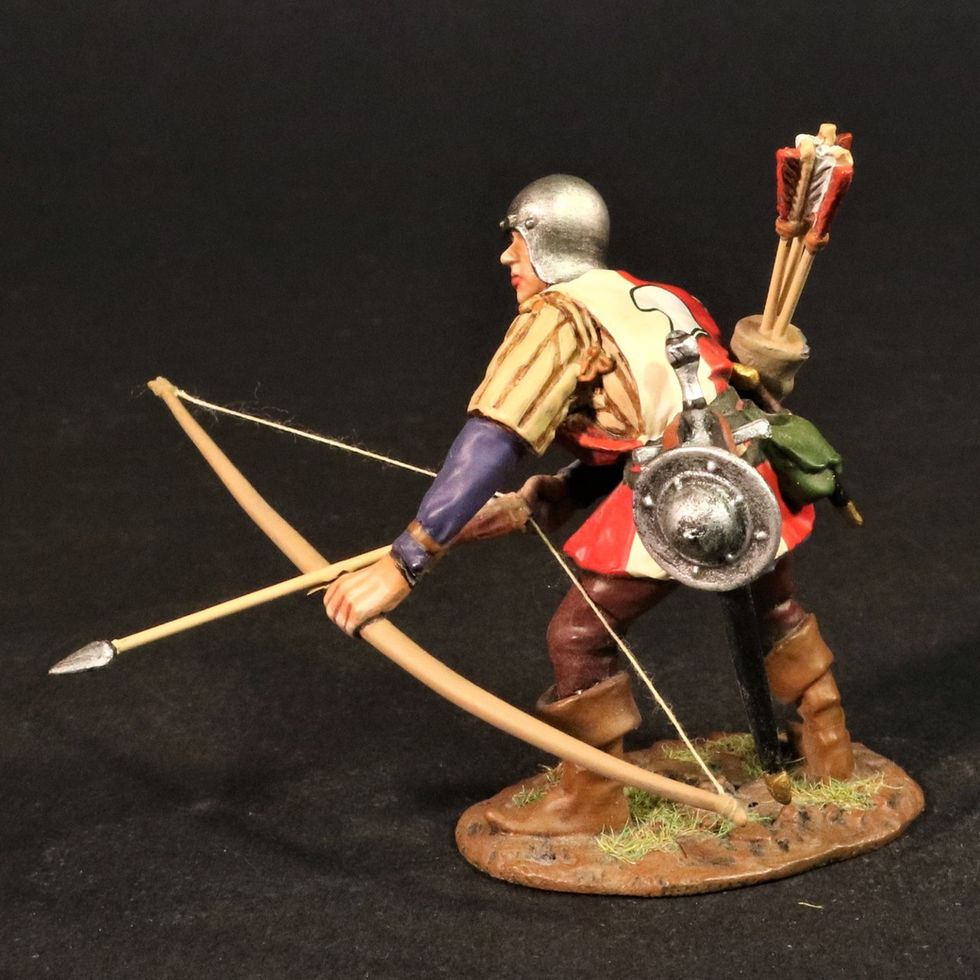 THE WARS OF THE ROSES 1455-1487 The Wars of the Roses were a series of dynastic wars for the throne of England. They were fought between supporters of two rival branches of the royal House of Plantagenet, the houses of Lancaster and York. They were fought in several sporadic episodes between 1455 and 1487, although there was related fighting before and after this period. The conflict resulted from social and financial troubles that followed the Hundred Years' War, combined with the mental infirmity and weak rule of Henry VI, which revived interest in the alternative claim to the throne of Richard, Duke of York. The final victory went to a claimant of the Lancastrian party, Henry Tudor, who defeated the last Yorkist king, Richard III, at the Battle of Bosworth Field. After assuming the throne as Henry VII, Henry Tudor married Elizabeth of York, the eldest daughter and heiress of Edward IV, thereby uniting the two claims. The House of Tudor ruled England and Wales until 1603. THE BATTLE OF BOSWORTH FIELD 1485The Battle of Bosworth (or Bosworth Field) was the last significant battle of the Wars of the Roses, the civil war between the Houses of Lancaster and York that raged across England in the latter half of the 15th century. Fought on 22 August 1485, the battle was won by the Lancastrians. Their leader Henry Tudor, Earl of Richmond, by his victory became the first English monarch of the Tudor dynasty. His opponent, Richard III, the last king of the House of York, was killed in the battle. Historians consider Bosworth Field to mark the end of the Plantagenet dynasty, making it a defining moment of English and Welsh history. LIVERIES AND BADGESBy the time of the Wars Of The Roses, badges were of considerable importance. These along with the Livery Colours were closely associated with what was then known as Livery and Retaining (Bastard Feudalism). The badges were rarely worn by their owners, for they were marks of ownership. They were, however, worn by his servants, house-hold men, retainers, and probably temporarily by the adherents to his cause. So great and extensive was the use of these badges, that they were far more generally employed than the coat of arms. For where a man’s badge would be common knowledge and bear some repute throughout the kingdom, few people would know what his coat of arms looked like. HERALDIC BANNERS, BANNERS AND STANDARDS There were 3 main types of flags used during the Wars of The Roses. The largest was known as the Heraldic Banner, and was used solely for displaying the coats of arms. This was normally square and made with stiffened buckram with a batton along the top. Therefore it was always on the fly, so the standard bearer did not have to wave the banner about, which gave him a spare hand in which he could brandish a weapon, so he would be able to defend himself and the banner. The Banner was a smaller version of the Heraldic Banner, and usually only carried one large badge or device. The field was often in the colour of the livery, but this was not a rule. The third type was known as a standard, and was a long swallow tailed style. In an effort to destroy Henry Tudor, Richard decided to leave his position on Ambion Hill, leading his household retainers down the slope, thundering towards Henry’s men with levelled lances. A few of the key personalities involved in King Richard’s heroic last charge will be available in the summer. King Richard III and his standard bearer, Sir Percival Thirlwall, charge towards Henry Tudor and his standard bearer William Brandon. King Richard III (2 October 1452 – 22 August 1485) was King of England from 1483 until his death in 1485, at the age of 32, in the Battle of Bosworth Field. He was the last king of the House of York and the last of the Plantagenet dynasty. His defeat at Bosworth Field, the last decisive battle of the Wars of the Roses, marked the end of the Middle Ages in England. Thomas Howard was an English nobleman, soldier and statesman who served four monarchs. He was the eldest son of John Howard, 1st Duke of Norfolk, by his first wife Catharina de Moleyns. The Duke was the grandfather of both Queen Catherine Howard and the great grandfather of Queen Elizabeth I. In 1513 he led the English to victory over the Scots at the decisive Battle of Flodden, for which he was richly rewarded by King Henry VIII, who was away in France at the time. Scale: 1/30Material: Pewter alloy, resin and synthetic fiberReleased Date: April 2022