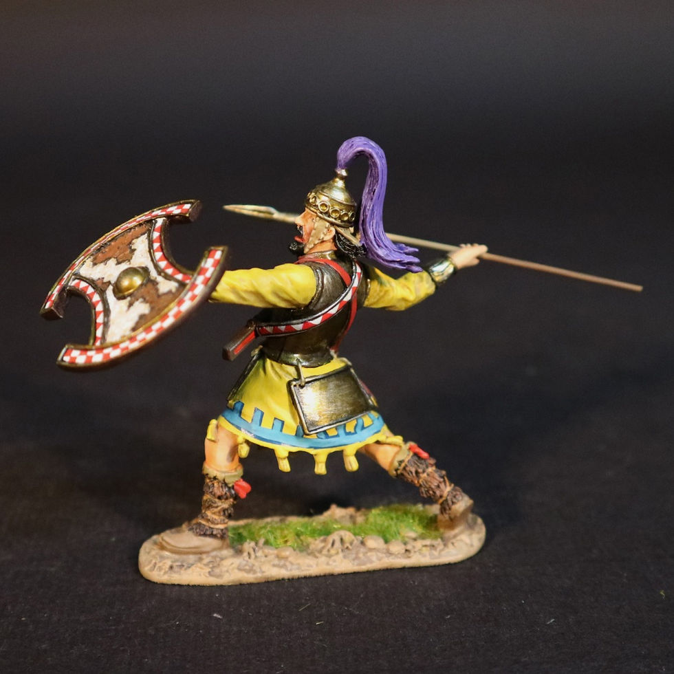 Traditionally, the Trojan War arose from a sequence of events beginning with a quarrel between the goddesses Hera, Athena and Aphrodite. Eris the goddess of discord, was not invited to the wedding of Peleus and Thetis, and so arrived bearing a gift. A golden apple, inscribed “for the fairest”. Each of the goddesses claimed to be the “fairest”, and the rightful owner of the apple. They submitted the judgement to a shepherd they encountered tending his flock. Each of the goddesses promised the young man a boon in return for his favour. Power, wisdom, or love. The youth, in fact Paris, a Trojan prince who had been raised in the countryside, chose love, and awarded the apple to Aphrodite. As his reward, Aphrodite caused Helen, the Queen of Sparta, and the most beautiful of all women, to fall in love with Paris. The judgement of Paris earned him the ire of both Hera and Athena, and when Helen left her husband, Menelaus, the Spartan king, for Paris of Troy, Menelaus called upon all the kings and princes of Greece to wage war upon Troy. Menelaus’ brother Agamemnon King of Mycenae, led an expedition of Achaean troops to Troy and besieged the city for ten years because of Paris’ insult. After the death of many heroes, including the Achaeans, Achilles, Ajax and the Trojans Hector and Paris, the city fell to the ruse of the Trojan Horse. The Achaeans slaughtered the Trojans, except for some of the women and children whom they kept or sold as slaves. They desecrated the temples, thus earning the wrath of the gods. Few of the Achaeans returned safely to their homes, and many founded colonies in distant shores. The Romans later traced their origin to Aeneas, Aphrodite’s son and one of the Trojans, who was said to have led the surviving Trojans to modern day Italy. PYRAECHMES OF AMYDON Pyraechmes was along with Asteropaeus, a leader of the Paeonians in the Trojan War. Pyraechmes came from the city of Amydin. Although Homer mentions Pyraechmes as the leader of the Paeonians early in the Iliad, in the Trojan ccatalogue he plays a minor role compared to the more illustrious Asteropaeus, a later arrival to the conflict. Pyraechmes was killed in battle by Patroclus, who was dressed in Achilles’ armour. Patroclus routed the panicked Trojans, and the first person he killed was Pyraechmes. Scale: 1/30Material: Pewter alloy and synthetic fibersReleased Date: February 2024
