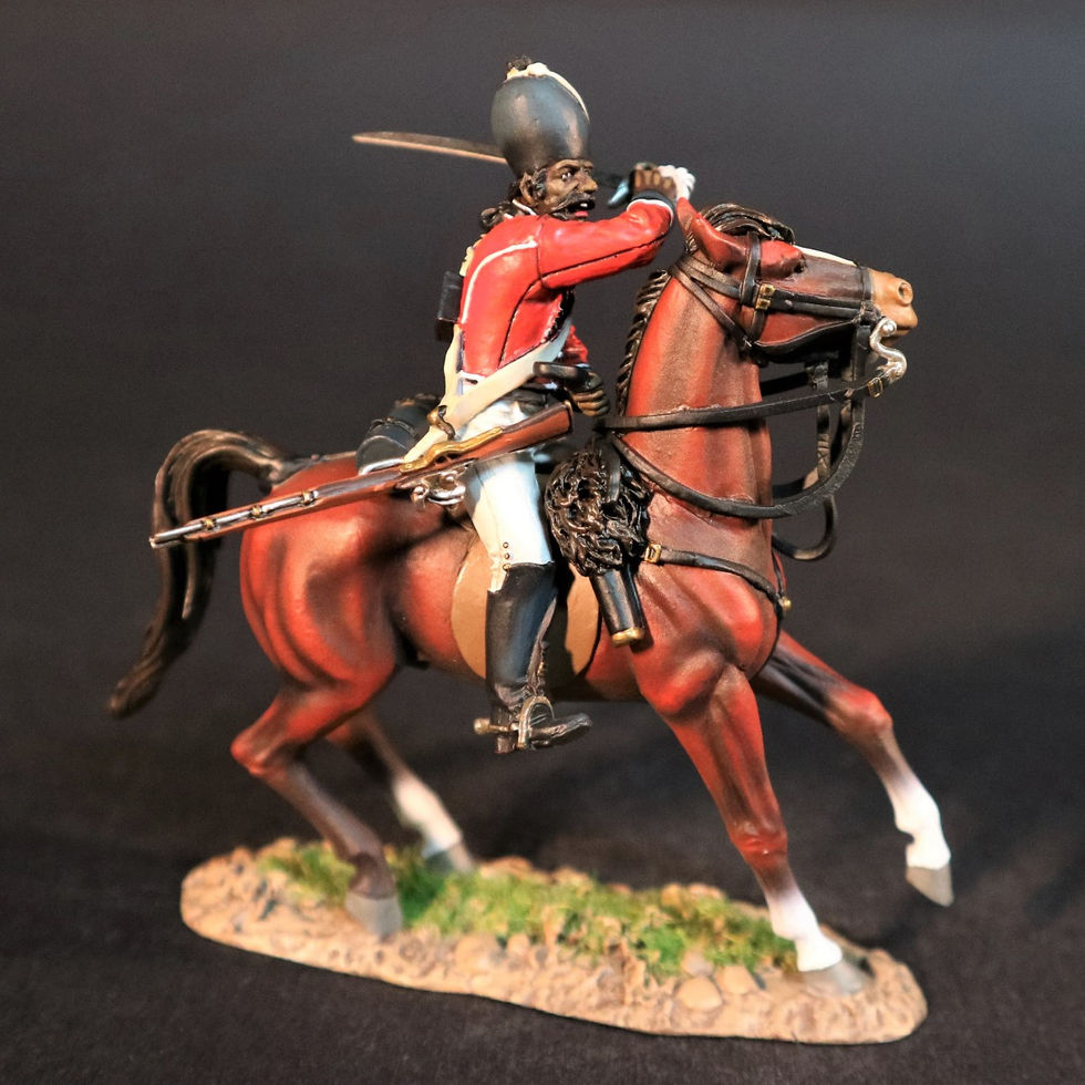 India did not see many King’s cavalry regiments, with only the 19th Light Dragoons serving in the country at this time. The effectiveness of the 19th Light Dragoons was considerable, and as a result the EIC soon started to raise native cavalry regiments. They were of course organized along the lines of a King’s regiment, in that they were made up of 3 squadrons , each of two troops and totalling 517 men. A troop at full strength was made up of 3 British officers, 3 Indian officers, 8 Indian NCO’s, a trumpeter, a water carrier and 70 troopers. The Commanding officer was always a European. Like their infantry counterparts the native cavalry were well trained and capable of carrying out battlefield manoeuvres by troop or half troop as well as any European regiment. Scale: 1/30Material: Pewter alloy and synthetic fibersReleased Date: July 2022