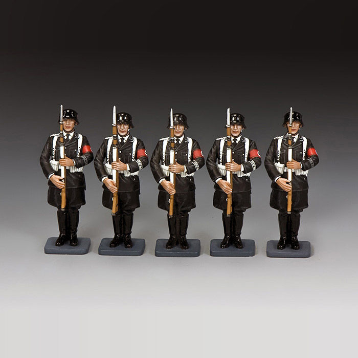 This special 5-figure parade set features five Leibstandarte ‘rank and file’ standing strictly to attention and ‘presenting arms’ for inspection or providing a guard of honour for a visiting dignitary.