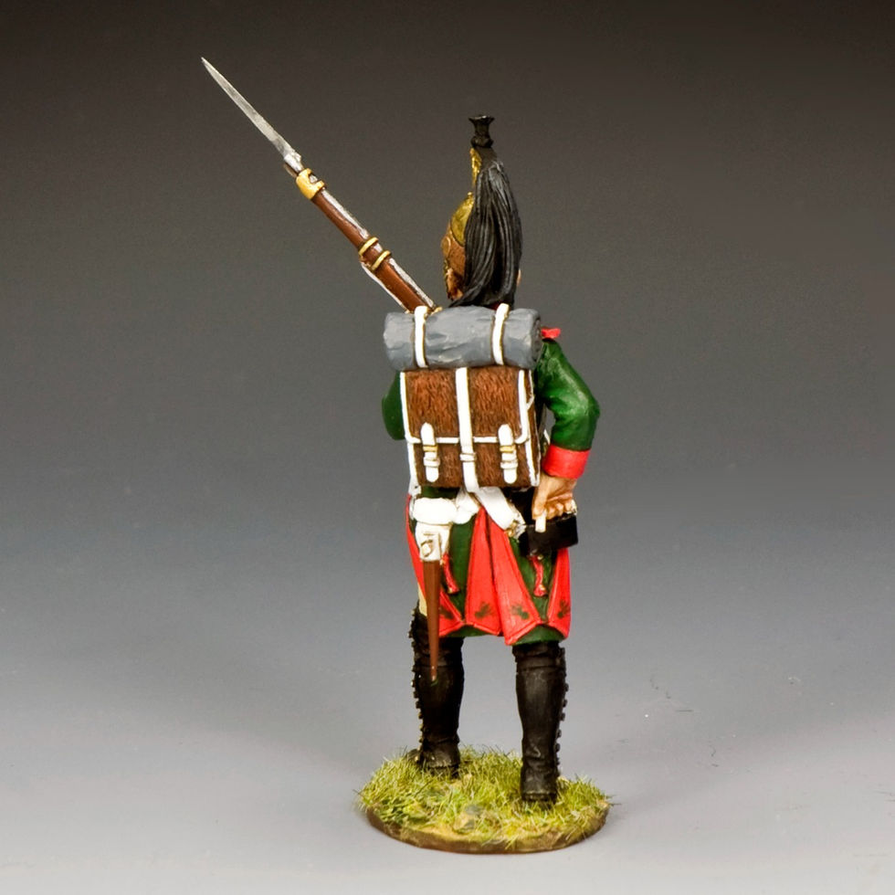 Holding his musket in his left hand as he reaches into his ammunition pouch for a fresh cartridge.Scale: 1/30Material: Pewter alloy and synthetic fibersReleased Date: June 2022