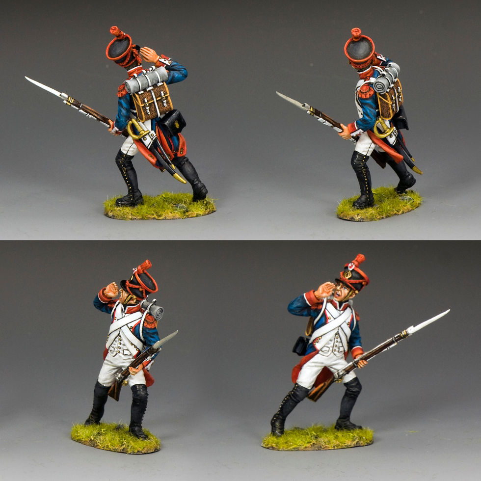 This Line Infantryman having fired a round reaches back to find a fresh cartridge to reload his musket.