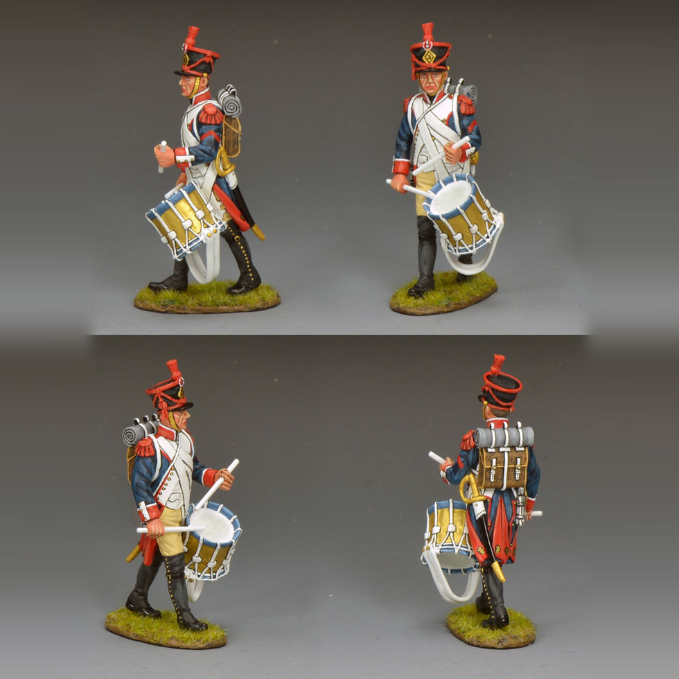 Keeping up a steady beat this drummer looks towards his officer for any order to change his drum roll from ‘Advance’ to ‘Charge!’ As can be seen here, drummers never carried muskets but were equipped with a short sword for personal protection.