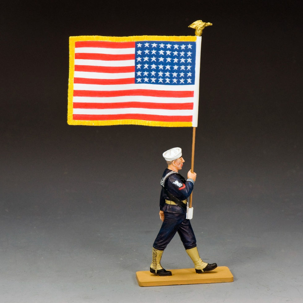 A marching ‘Bluejacket’ sailor holding the 48-star national flag aloft. Scale: 1/30Material: Pewter alloyReleased Date: March 2023